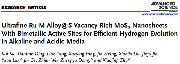 科研进展 | 具有双金属活性位点的超细Ru-M合金@富含硫空位的MoS2纳米片在碱性和酸性介质中高效析氢